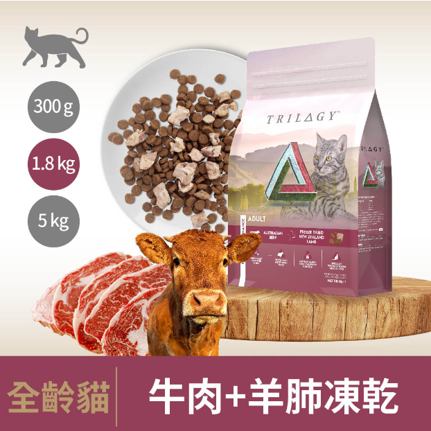 【奇境】澳洲牛肉+紐西蘭羊肺凍乾|無穀全貓糧 1.8kg