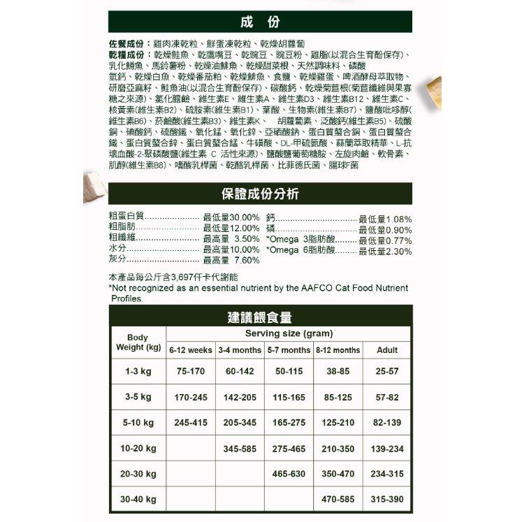 • ✔️ 粗蛋白 ≥ 30%(支持肌肉與成長)