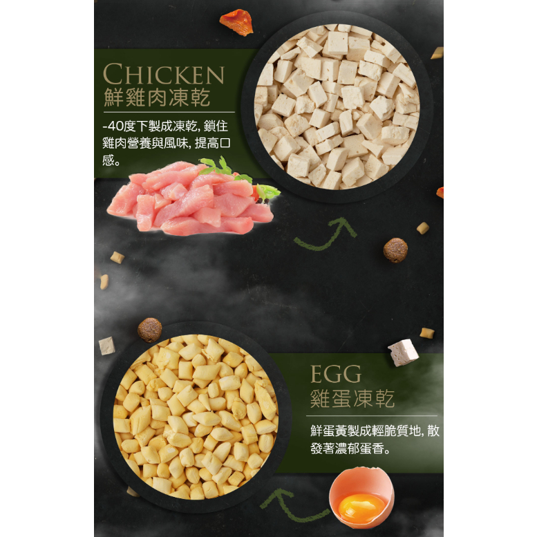 嚴選雞肉與火雞雙蛋白,搭配凍乾技術保留肉香與營養,提升適口性並降低腸胃負擔。 添加Omega 3&6脂肪酸、益生菌與完整維生素礦物質,有助腸道穩定、皮毛健康與日常活力維持。 特別適合成犬、挑嘴犬及對肉類興趣較低的狗狗。