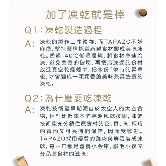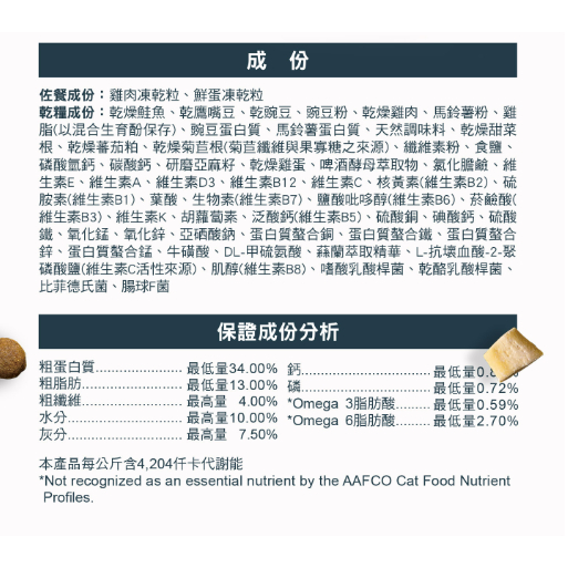 嚴選鮭魚+雞肉雙蛋白,天然低敏、好消化,特別適合挑嘴貓、皮膚敏感或不愛吃肉的貓咪。 富含 Omega 3・6 脂肪酸,有助皮毛亮澤與免疫健康,凍乾製程完整保留營養與鮮味,適口性極佳。