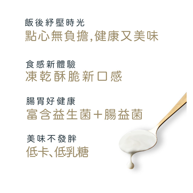 低卡、低乳糖、無添加的凍乾優格點心,富含益生菌,幫助腸胃健康,適合日常獎勵與洗澡後安撫。