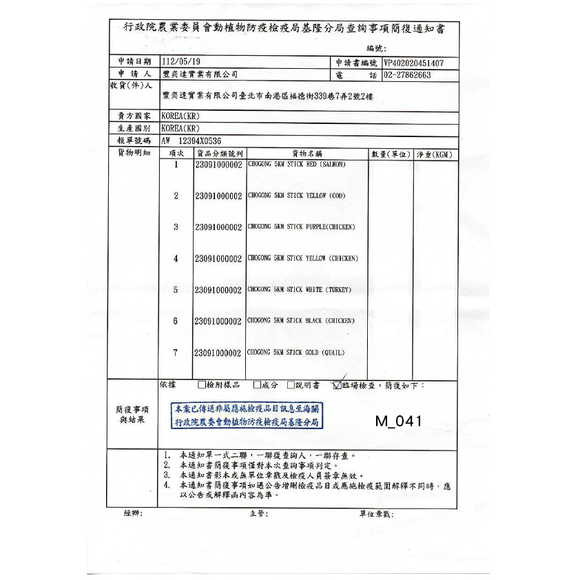 Chogong 5km Stick 朝貢肉泥 - 鵪鶉蜂膠/增活力