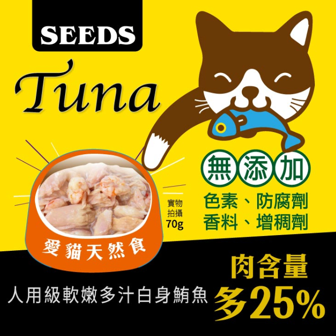 】SEEDS惜時 愛貓天然食70G 單箱24罐-白身鮪魚+起司 (黃色)