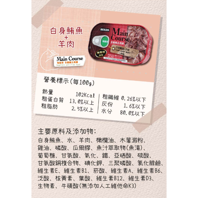 惜時Main Course每客斯全營養貓咪主食罐(白身鮪魚+羊肉) 24罐