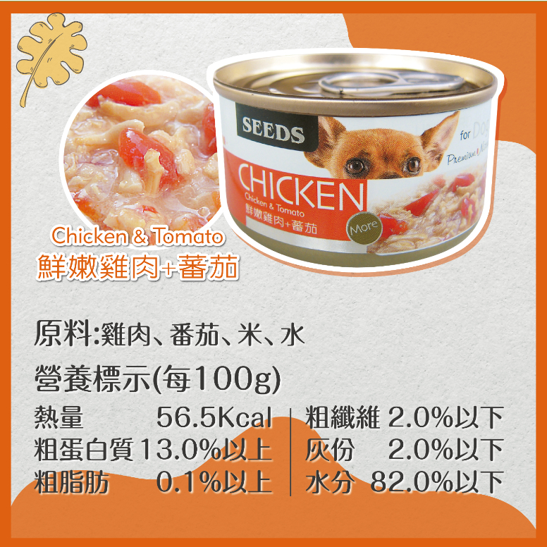 惜時SEEDS Chicken愛狗天然食24罐-鮮嫩雞肉+南瓜+青豆