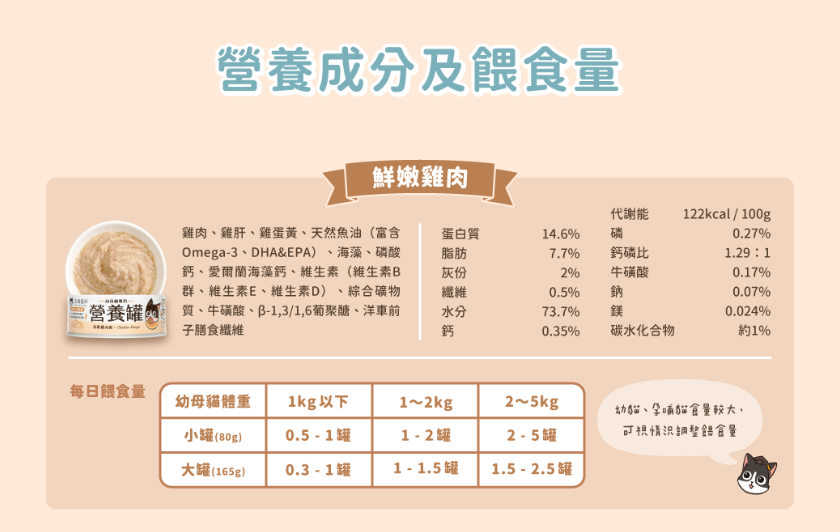 嚴選鮮嫩雞肉為主要蛋白來源,搭配雞肝、雞蛋黃與天然魚油,為毛孩提供高消化率、完整且均衡的每日營養。口感細緻、香氣自然,特別適合挑嘴貓與幼母貓食用。