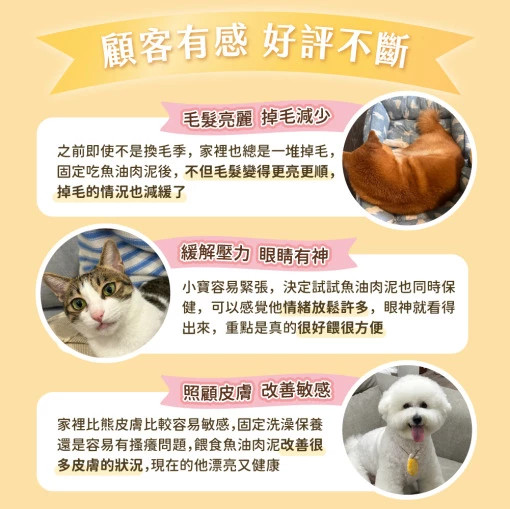 升級大革命:下一代毛孩保健品!一條肉泥 = 一顆魚油 300 mg嚴選西班牙頂級魚油 • 94% Omega-3 高濃度 • rTG 型態高吸收利用率 • IFOS 國際魚油認證 √皮毛照護 √心臟保養 √關節保健 √免疫提升 √神經發育
