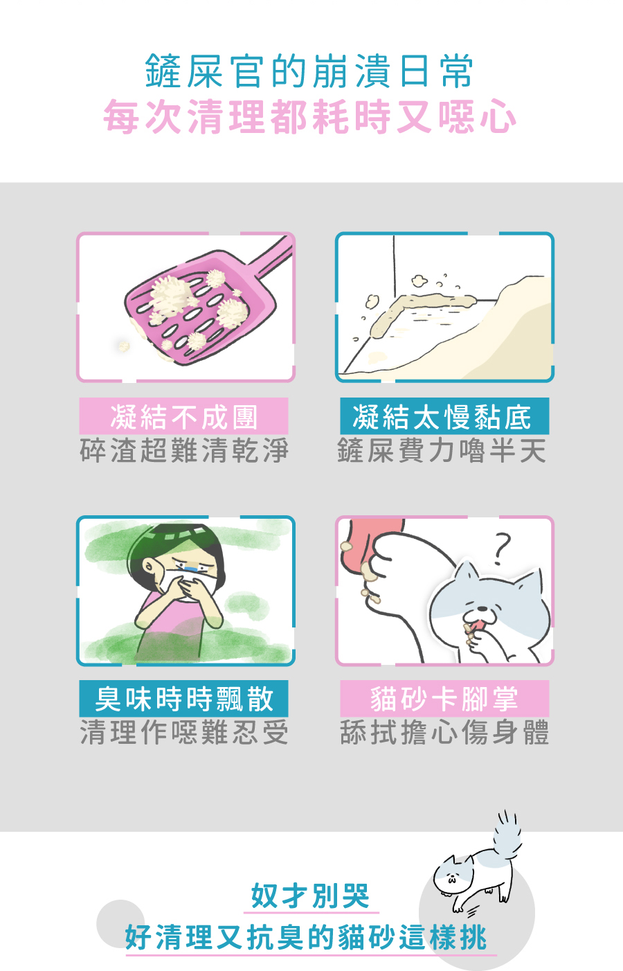 如果你是超凝愛用者►不沾黏當砂盆的防護罩,尿味OUT!如果你是他牌貓砂者►不沾黏讓邊角、底部卡砂OUT!