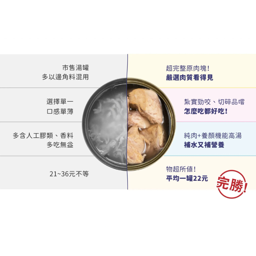 ✔ 整塊原肉,肉量扎實 ✔ 純肉高湯,補水補營養 ✔ 高適口性,挑嘴救星 ✔ 犬貓皆適用