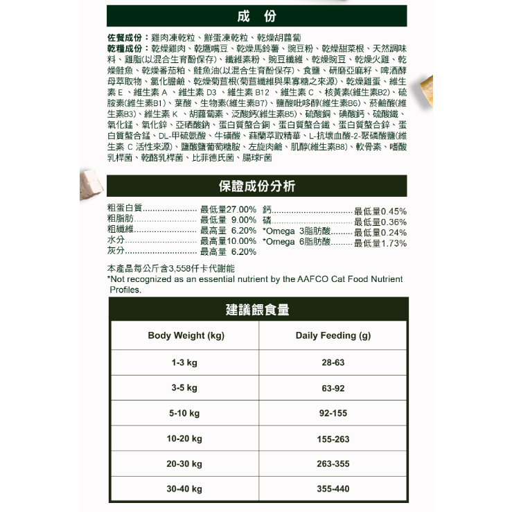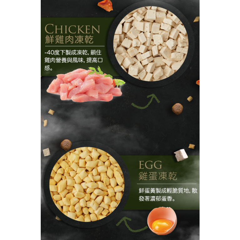 嚴選雞肉蛋白,搭配凍乾技術保留營養與香氣,提升適口性並降低腸胃負擔。 蛋白質比例適中,幫助熟齡犬維持肌肉量與活動力,同時添加Omega 3&6脂肪酸、益生菌與完整維生素礦物質,支持關節、腸道與皮毛健康。